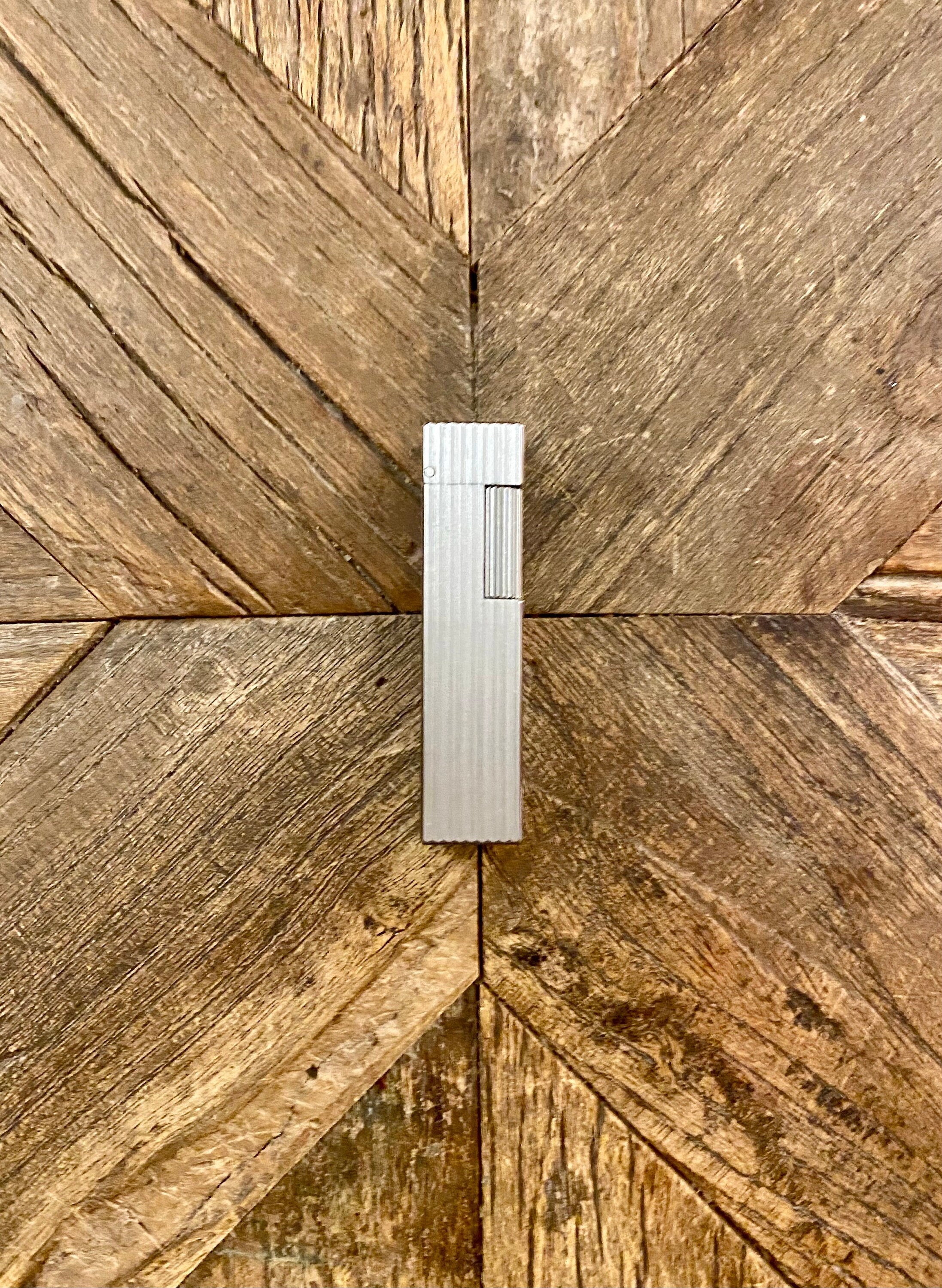 Description and origin: Maruman lighter - Square size - Vertical line design - Silver plated. Made in Japan