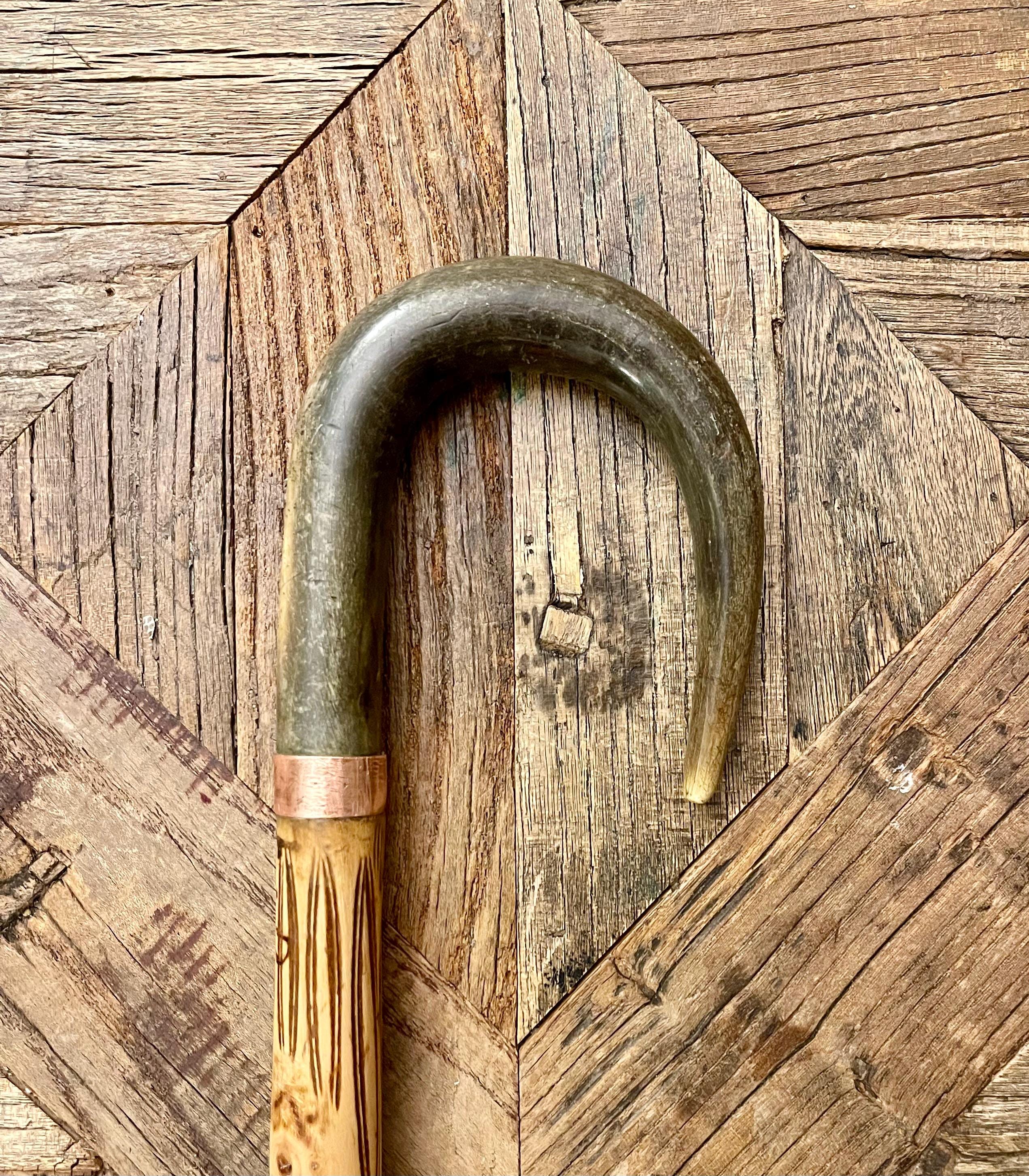 Description and origin: shepherd's walking stick with an elegant horn knob. Barell made of a medlar-type wood. France