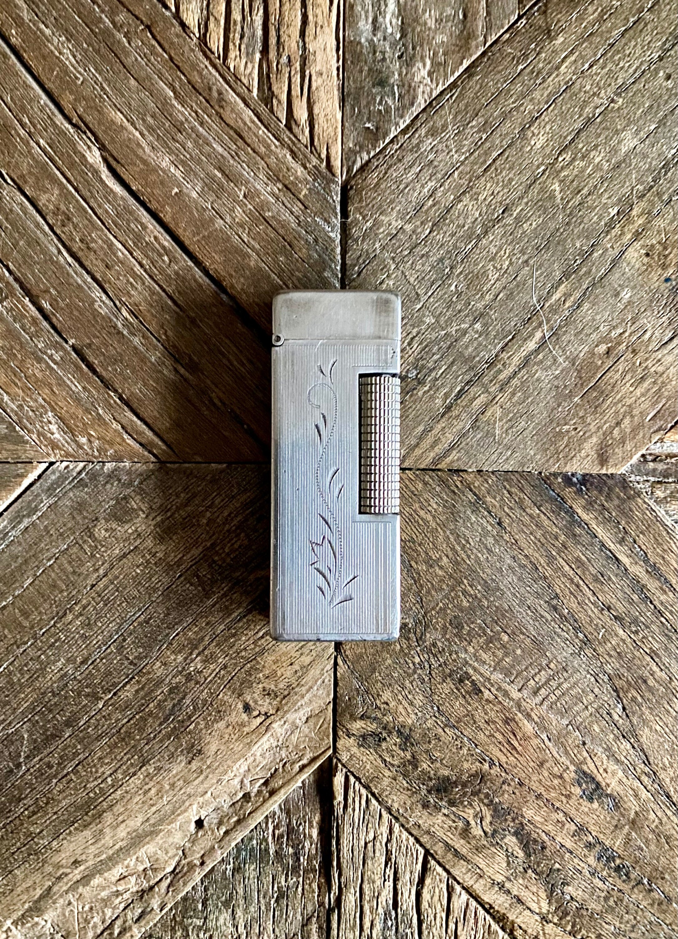 Description and origin: Maruman lighter with an enjoyable vegetal engraving. Made in Japan