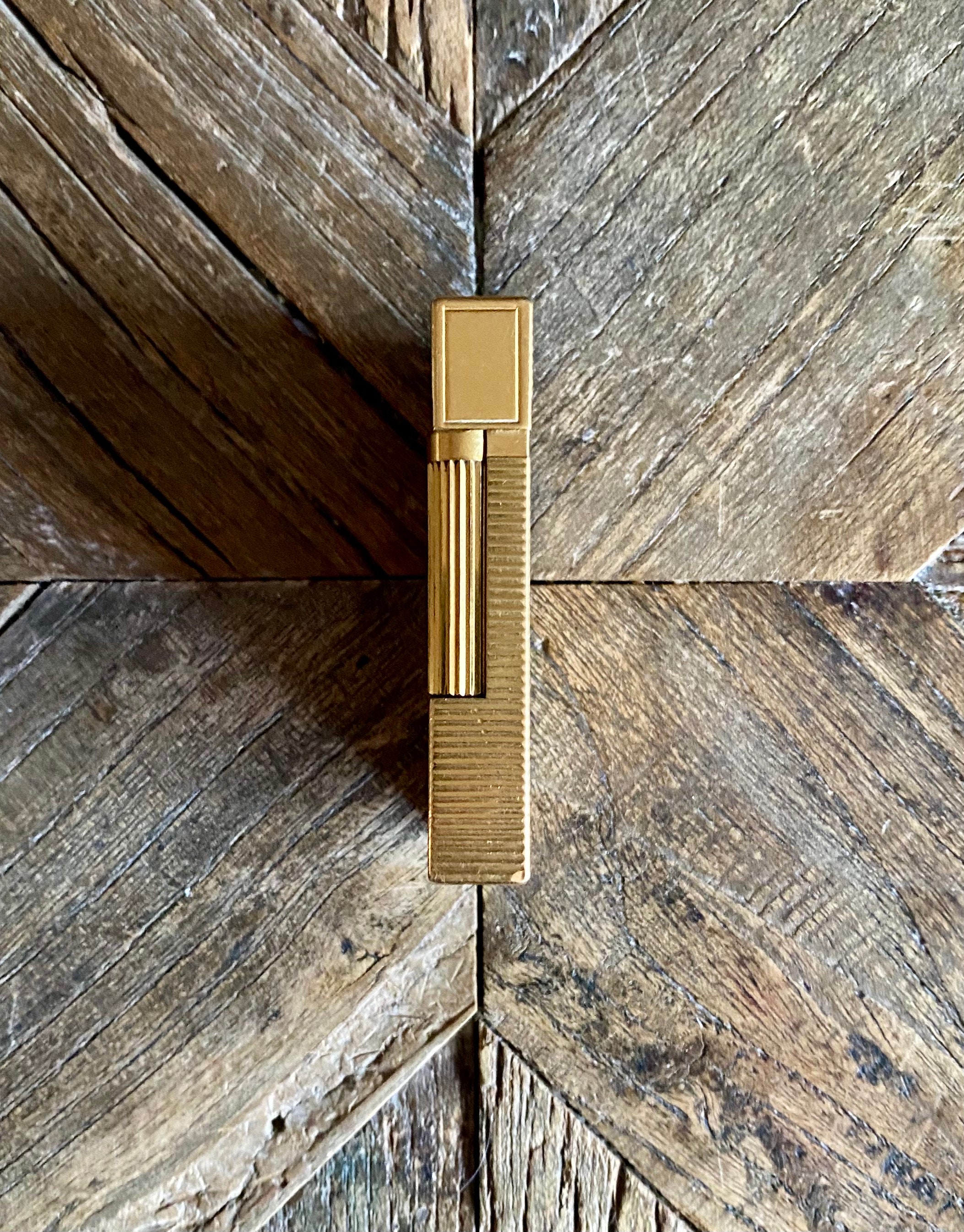 S. T. Dupont lighter, Line 2 - Horizontal-line design, gold-lated - Vintage