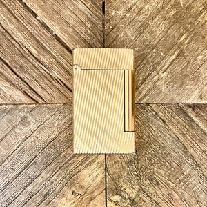 Description and origin: S. T. Dupont lighter - Line 1 - Large model - Vertical & horizontal lines - Gold-plated. Serial number: 34290H. Paris, France
