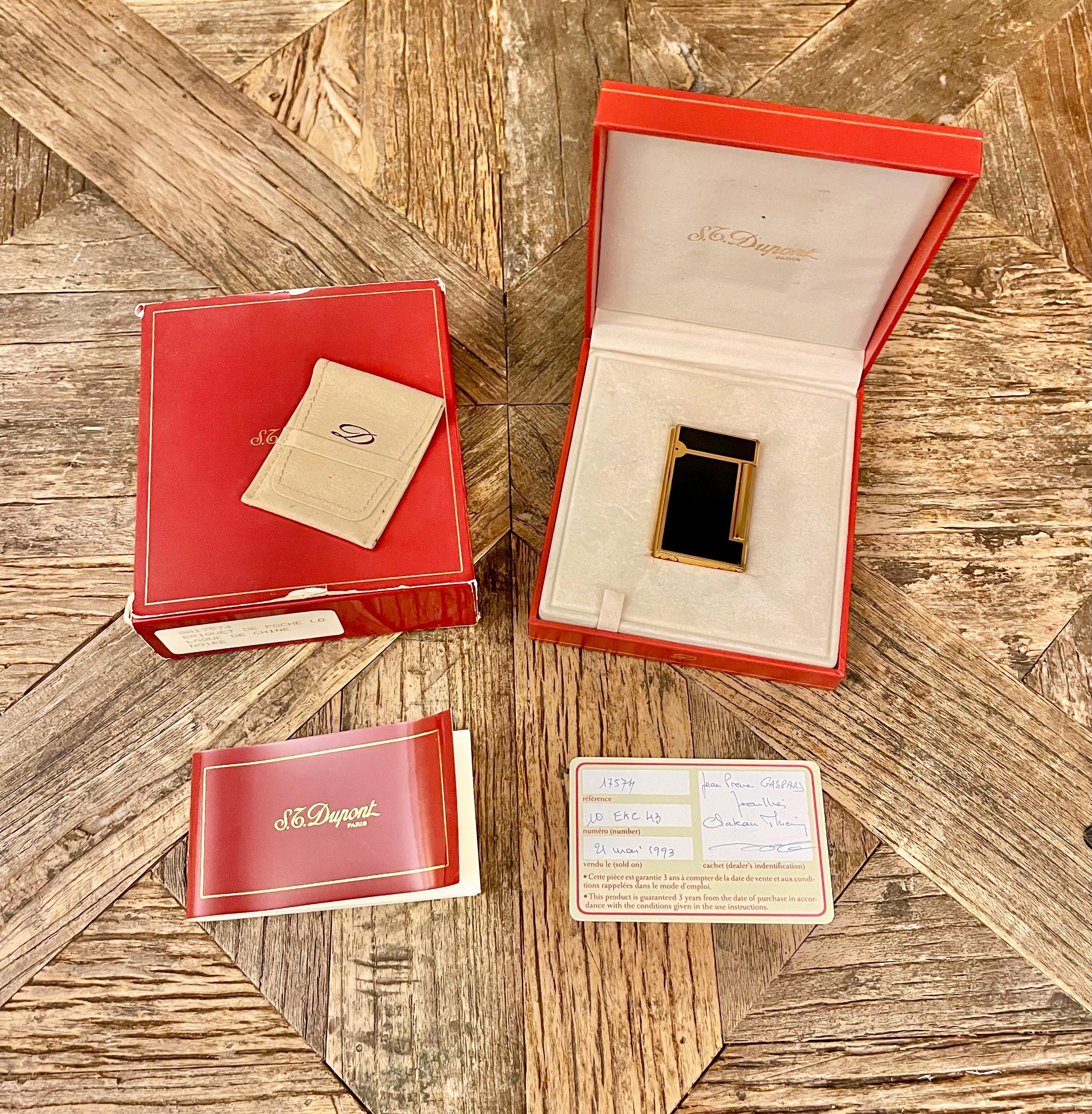 Description and origin: S. T. Dupont lighter - Line D - Black Chinese lacquer - With its original box. Serial number: 10ERC43. Made in France
