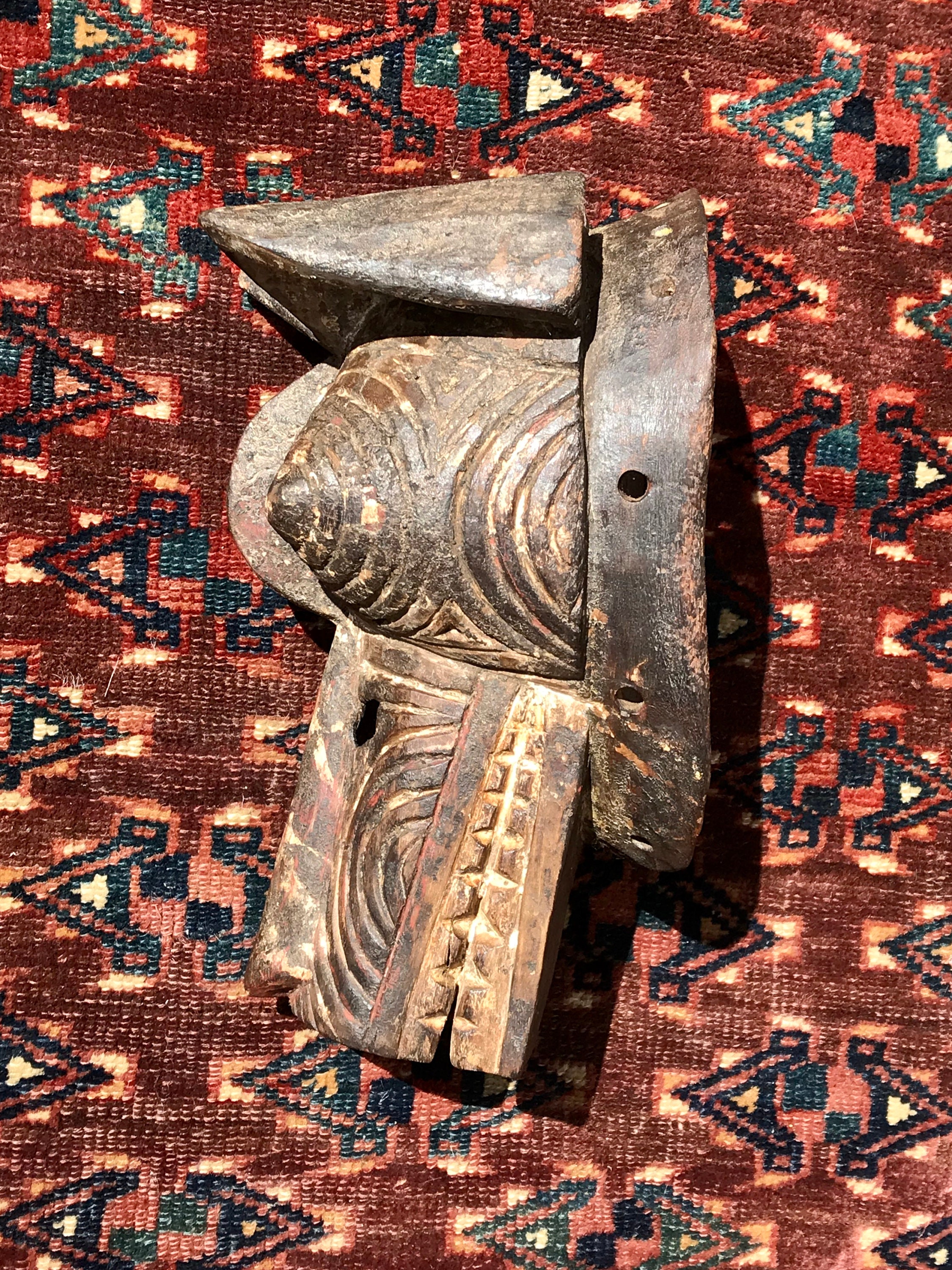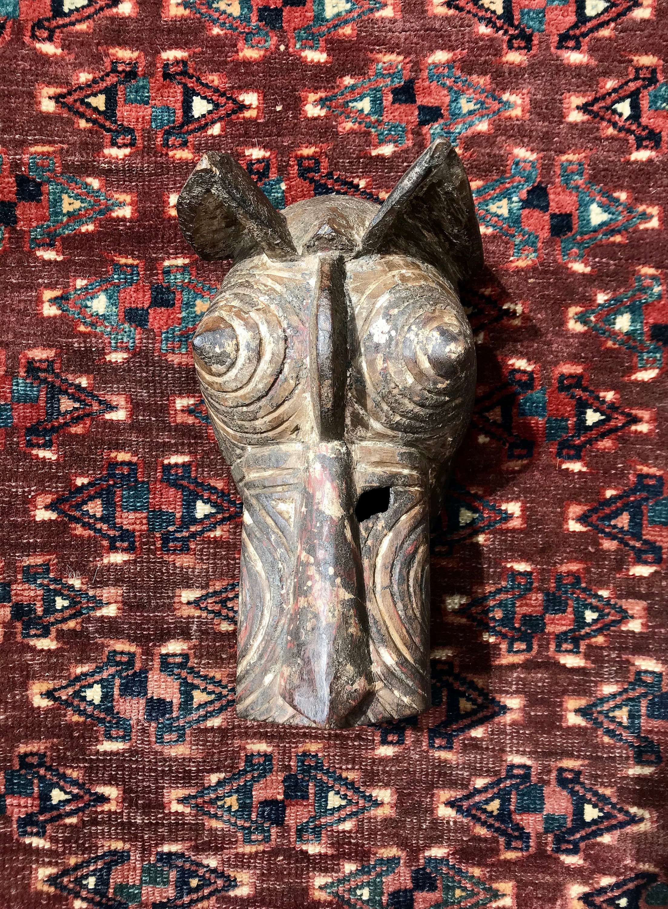 Origin and description: ceremonial mask from Gurunsi tribe, a community living in southern Burkina Faso, representing a hyena.